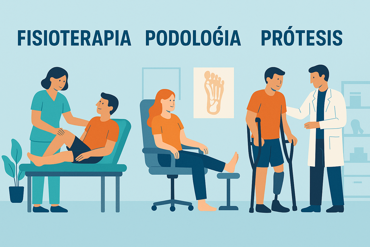 Nuestro equipo en Fisioterapia, Podología, Ortesis y Prótesis trabaja de la mano para ofrecerte un cuidado personalizado de vanguardia, adaptado a tus necesidades únicas. Desde la rehabilitación hasta la mejora de la marcha, con la adaptación personalizada de dispositivos ortoprotésicos a medida.